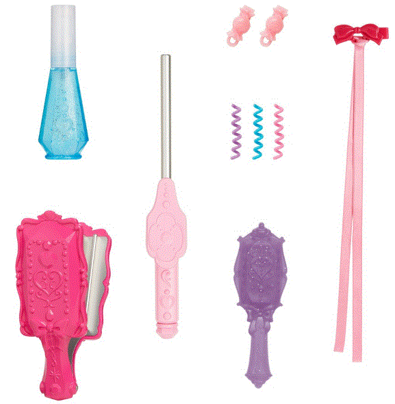 ストレートヘアに戻したいときは、ミストで水を吹きかけ付属のブラシで梳かし、繰り返し遊べます。
