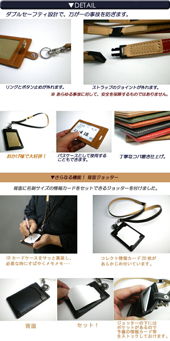[手作り][オリジナル][日本製][革][レザー][牛革][皮][小物][贈り物][ギフト][プレゼント][父の日][母の日][還暦][ホワイトデー][バレンタイン][柔らか素材][プレゼント][ネックストラップ]ジョッター付き 縦型 IDカードケース & ネックストラップ アイストーリー栃木オイルレザーシリーズ ネックストラップの表裏について こちらの商品はメール便配送可能です。