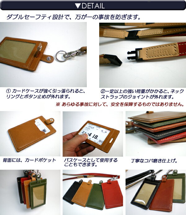 仕様 素材 牛革 製作 日本 サイズ 縦:約110mm(接続パーツ含む:130mm) 横:70mm、 厚み:4mm (窓部 縦:77×横:50mm) ●ネックストラップ 長さ約880mm(金具を除いて) ストラップ幅12mm・厚み2mm 重量 約50g カラー ベージュ、ブラウン、レンガ、チョコ、ブラック、レッド、グリーン、ブルー ※画面上と実物では多少 色具合が異なって見える場合も ございます。