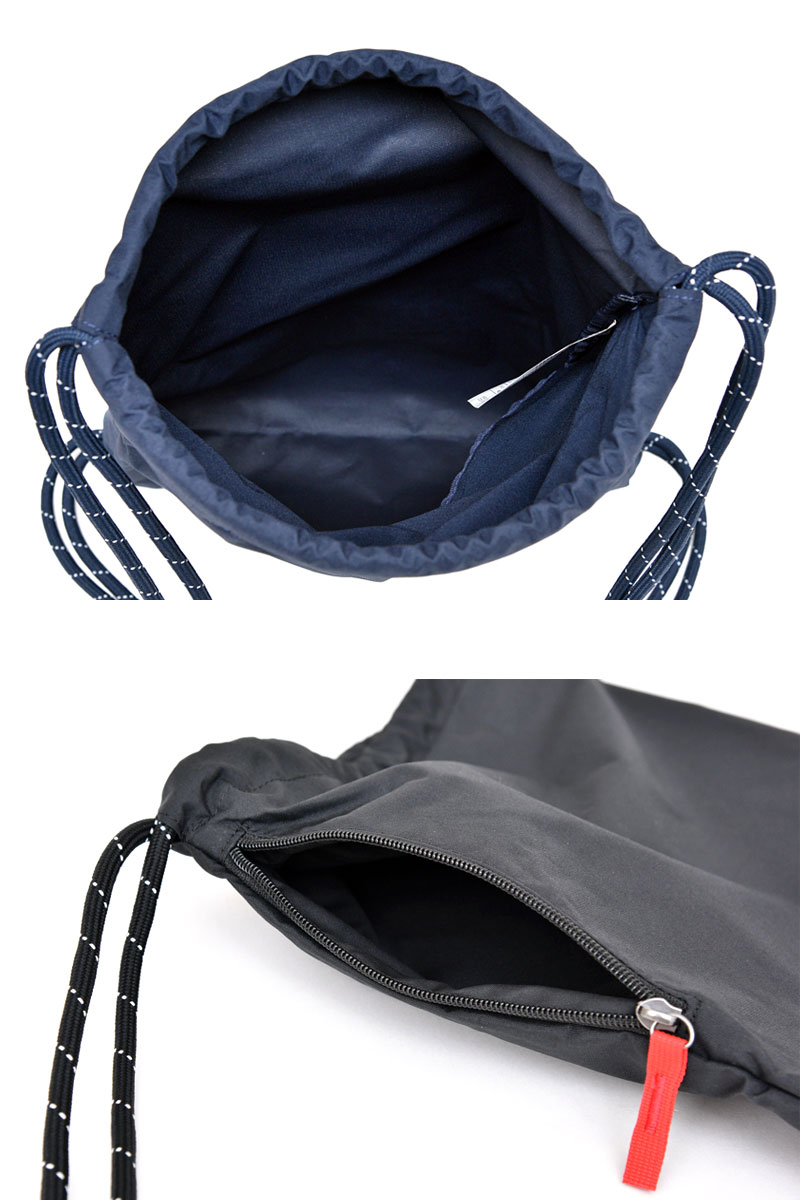 大容量のメインコンパートメントはドローストリングで開閉でき、荷物の出し入れも簡単。